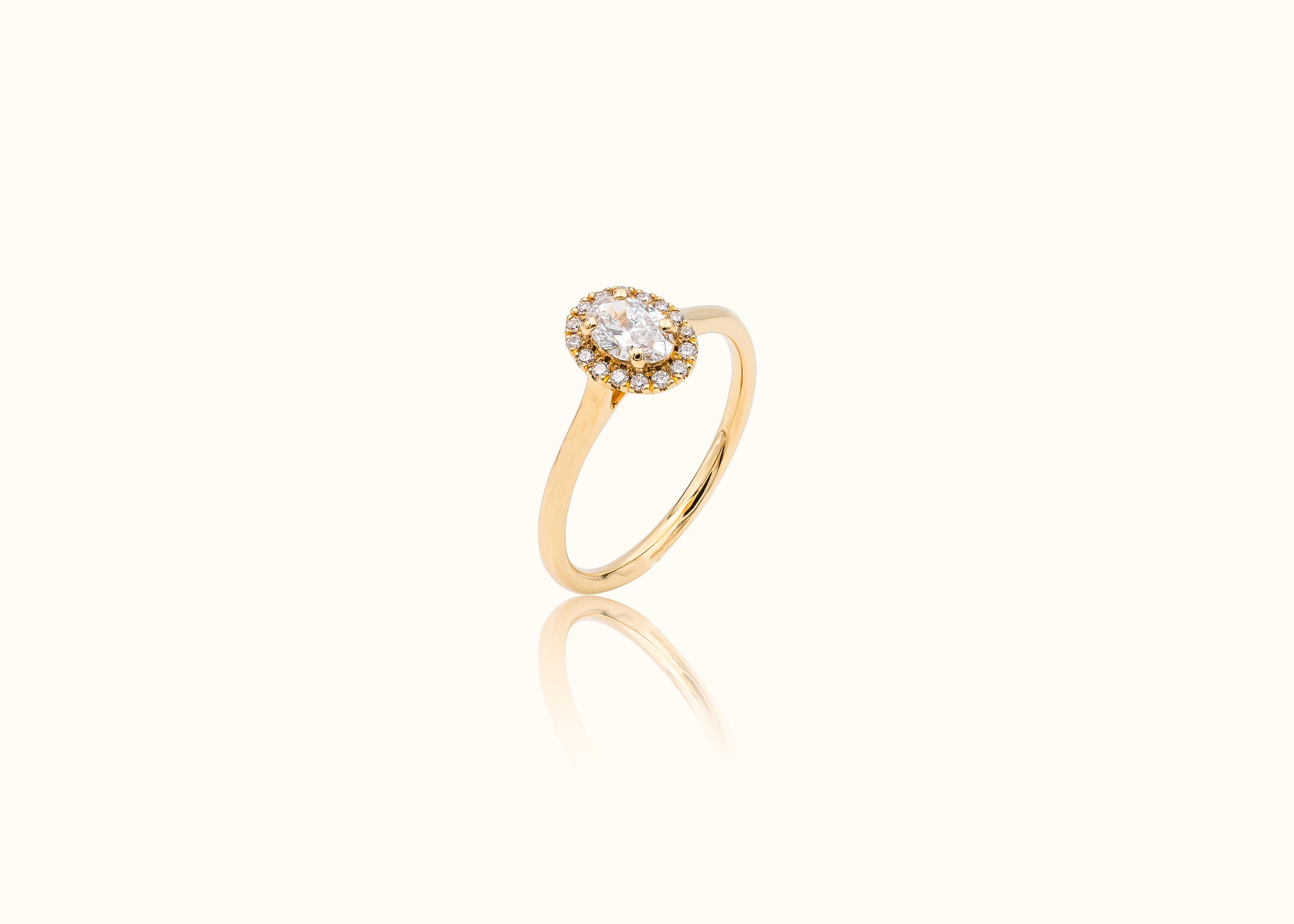 Sophia is de belichaming van tijdloze elegantie. Met haar ovale diamant in een verfijnde halo setting is ze ontworpen om een leven lang te stralen. Deze ring is niet alleen een statement van schoonheid, maar ook een symbool van liefde die de tand des tijds doorstaat.