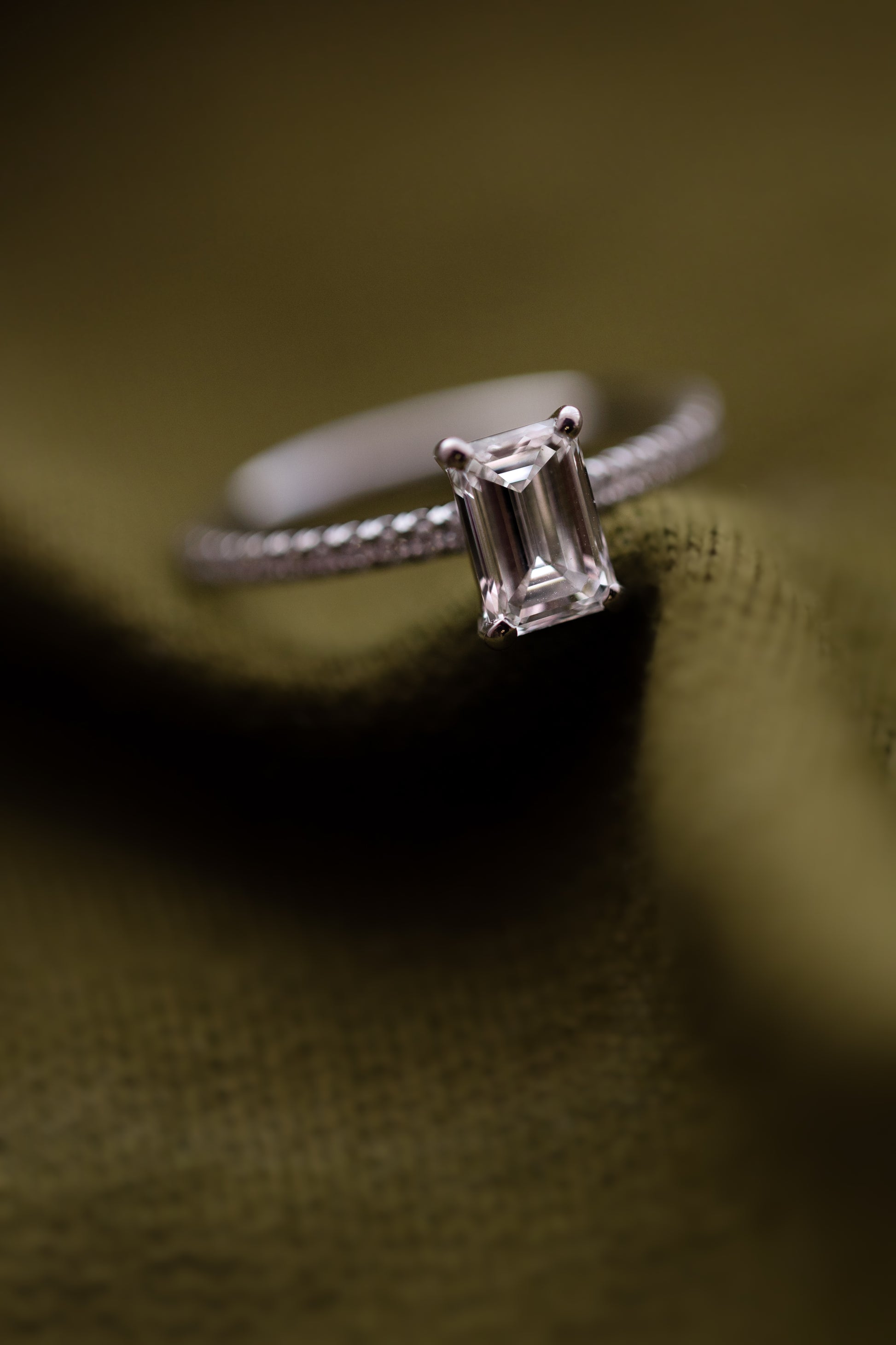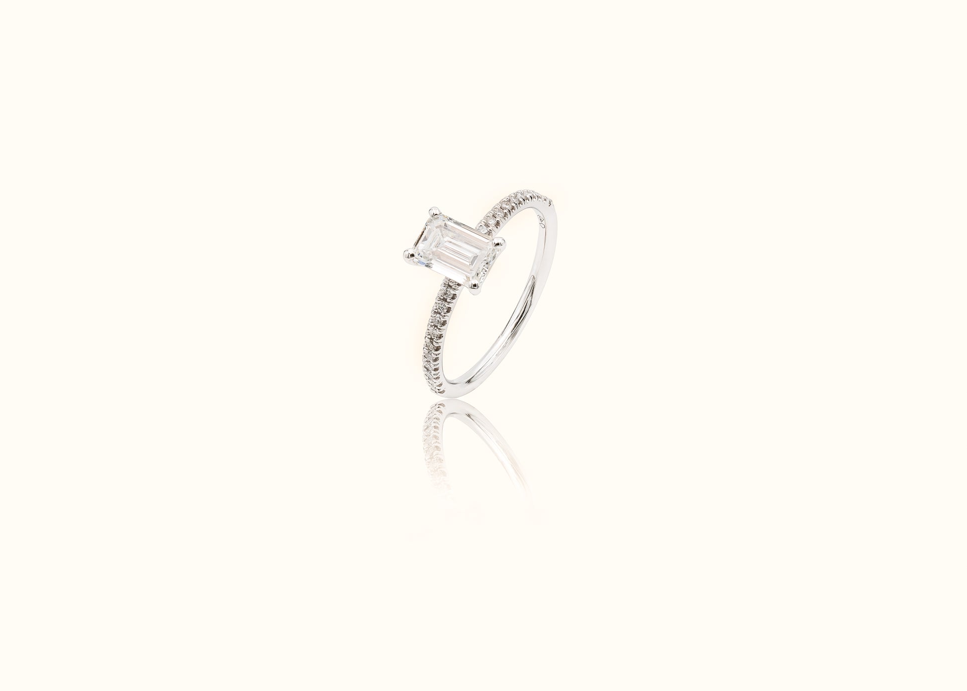Deze emerald diamant wordt aangevuld met 24 witte lab grown diamanten 1,1 mm.