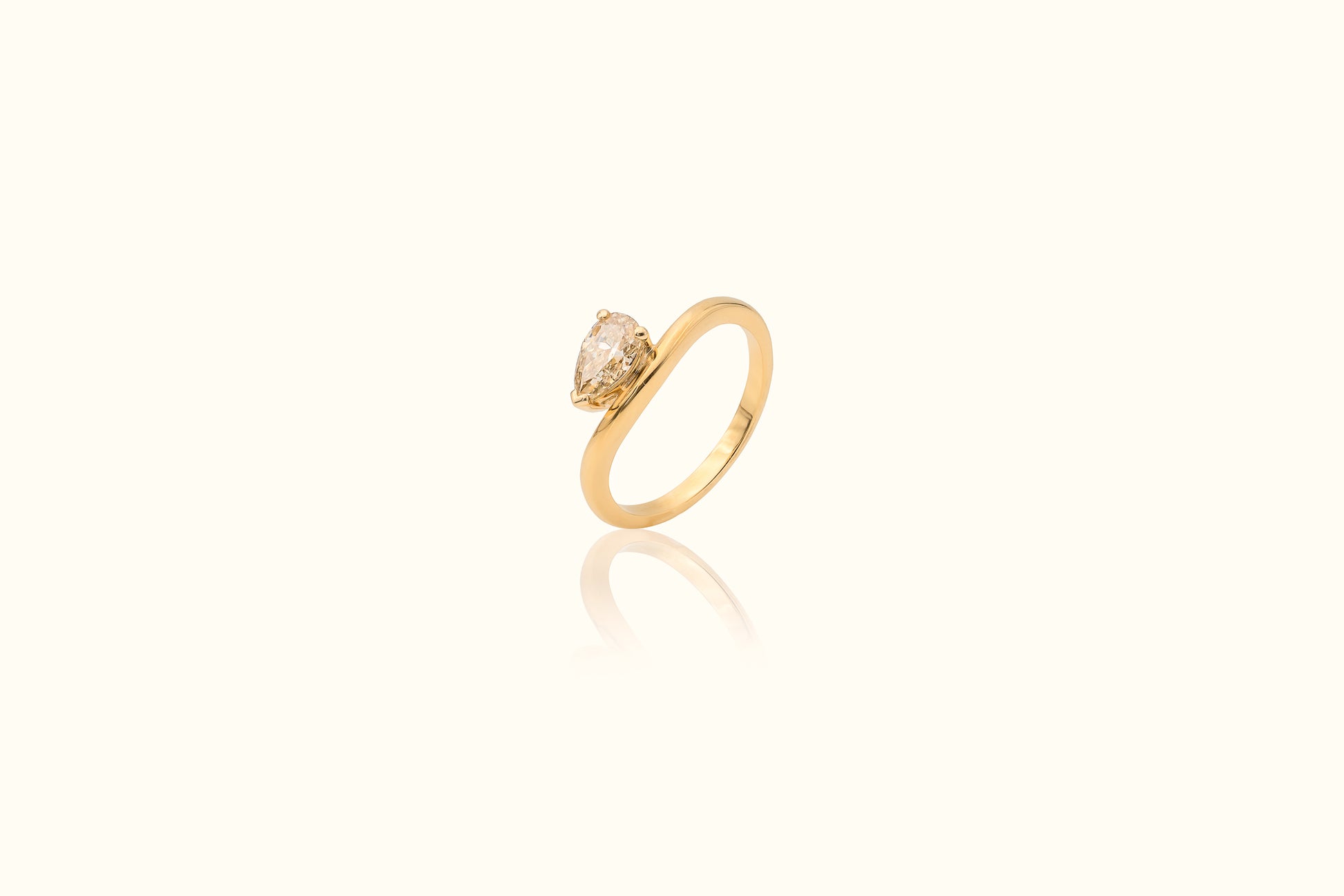 Solenne ontstond uit een toevallige vondst: een natuurlijke, peervormige diamant met een warme gele tint die doet denken aan zonlicht op water.