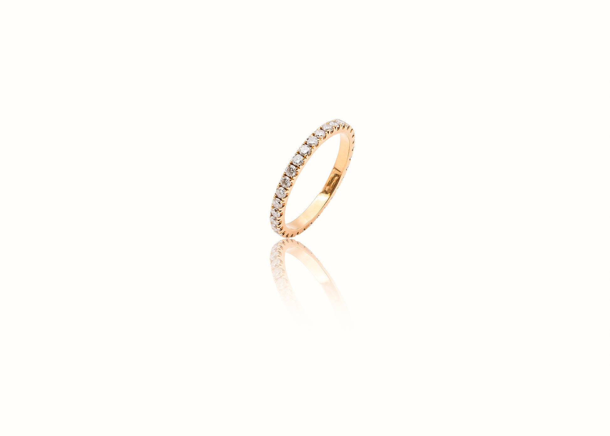 Julie is de ultieme klassieke trouwring. Volledig omringd door diamanten, straalt deze ring een pure elegantie uit die iedere beweging aan je vinger benadrukt. Een ode aan de eeuwige liefde en de belofte die je samen deelt - een ring die niet alleen schittert, maar ook voor altijd blijft.
