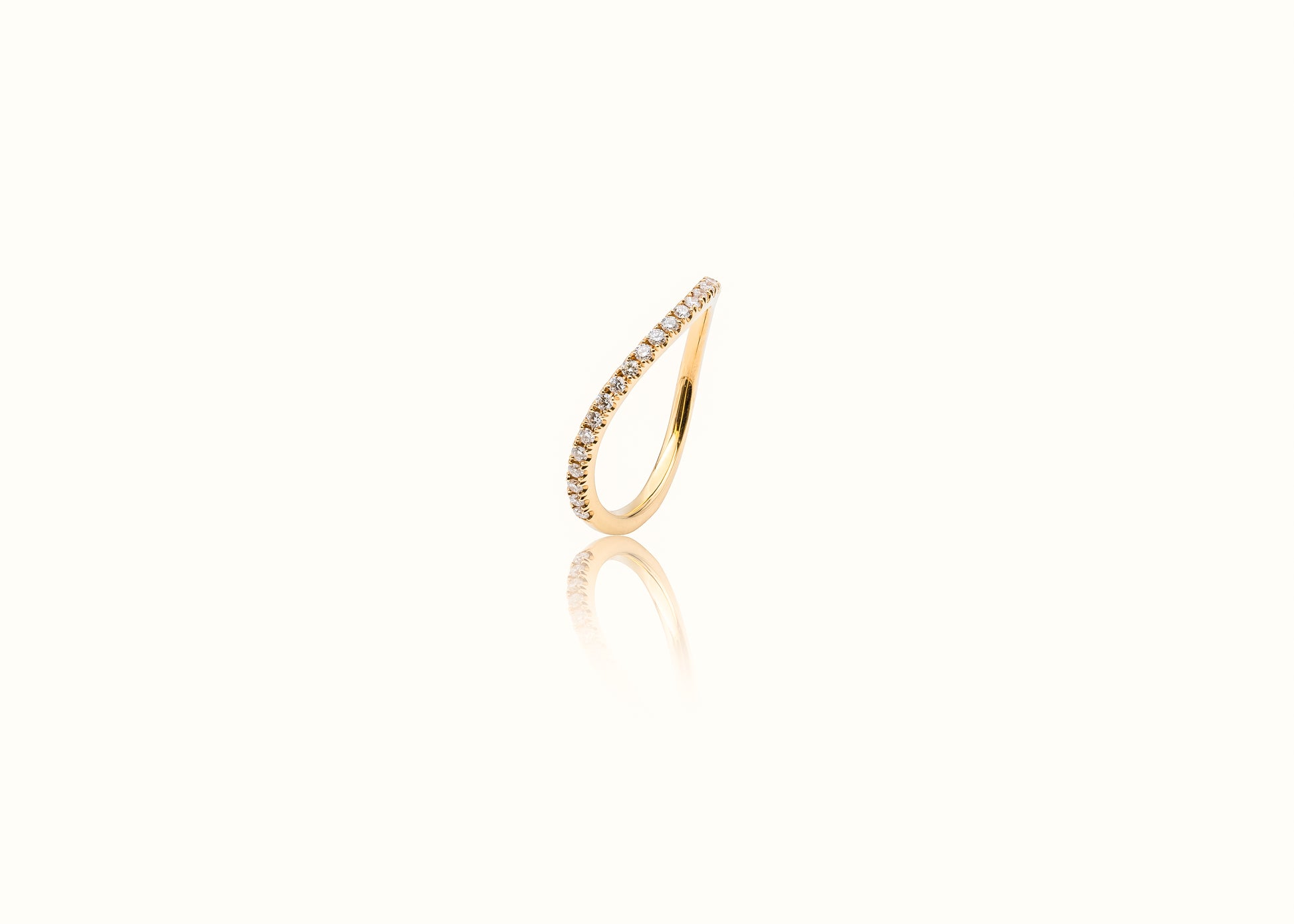 Nina is een golvende ring die de verfijning van eenvoud en de kracht van subtiliteit combineert. Vervuld met fonkelende diamantjes die elegant de beweging van de ring benadrukken, spreekt dit ontwerp voor zichzelf. Het is een tijdloos stuk, dat zijn schoonheid niet schreeuwt, maar fluistert - een ring die met elke draai haar verhaal vertelt.