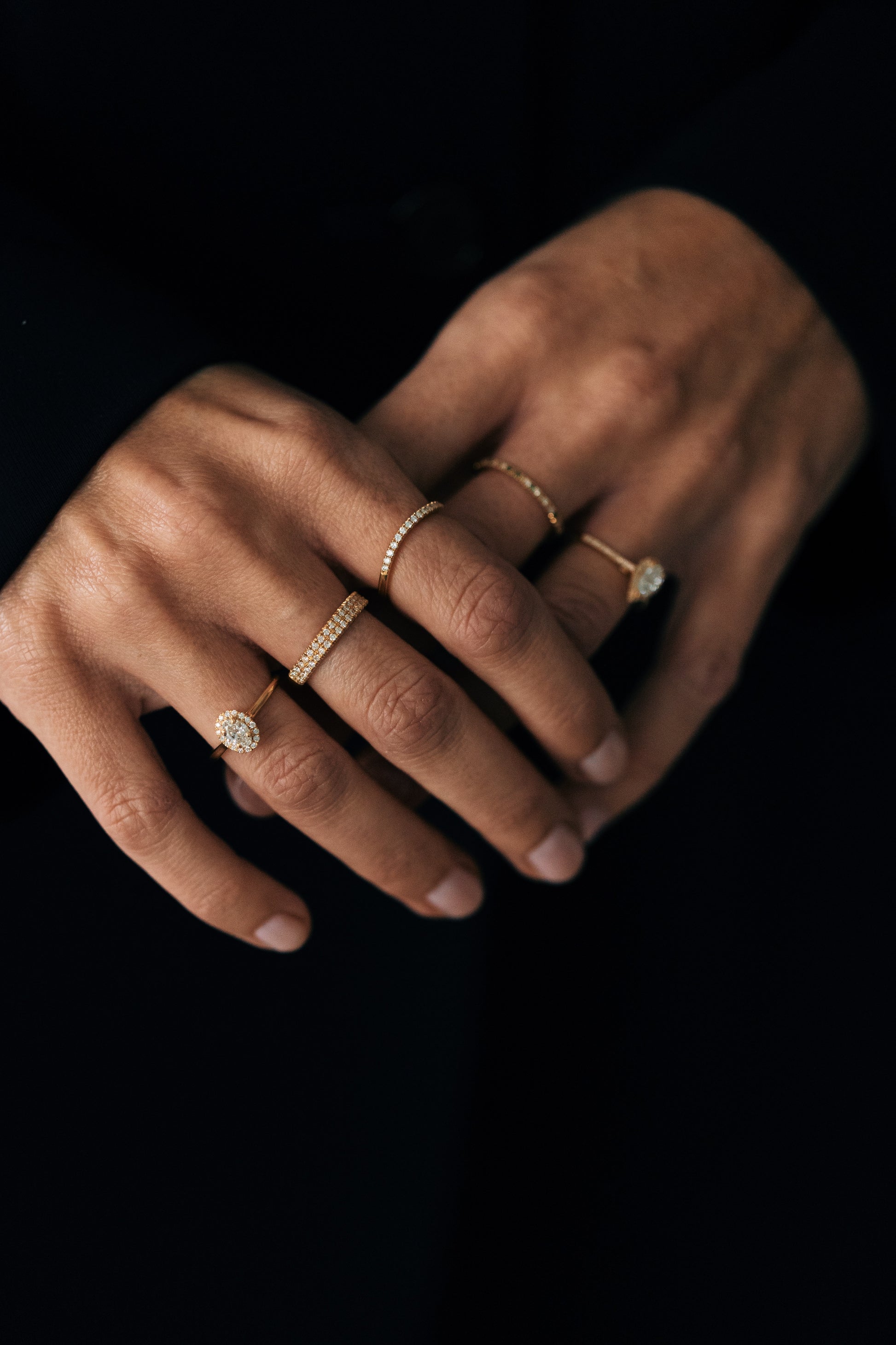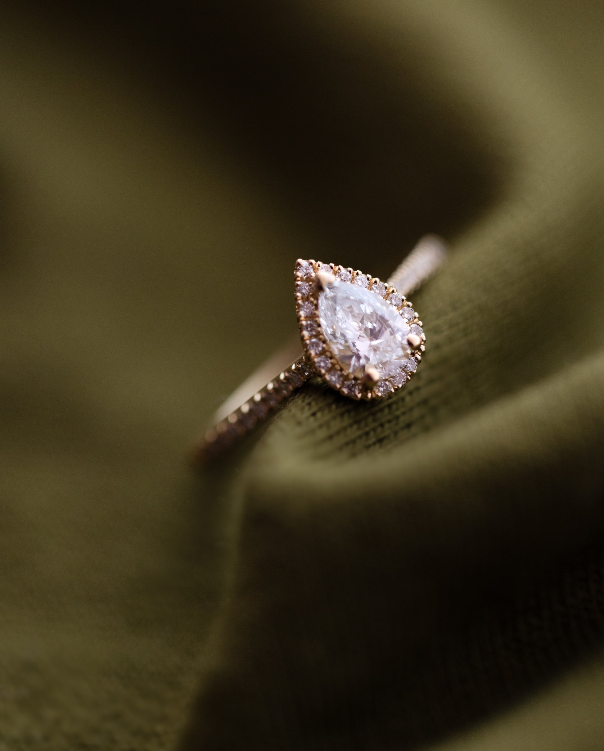 Celine straalt met een peervormige lab-grown diamant van 0,56 karaat, omgeven door een schitterende halo en een band die is bezaaid met diamantjes. Een juweel dat kracht uitstraalt door zijn verfijning en een schittering die het midden houdt tussen tijdloos en eigentijds.