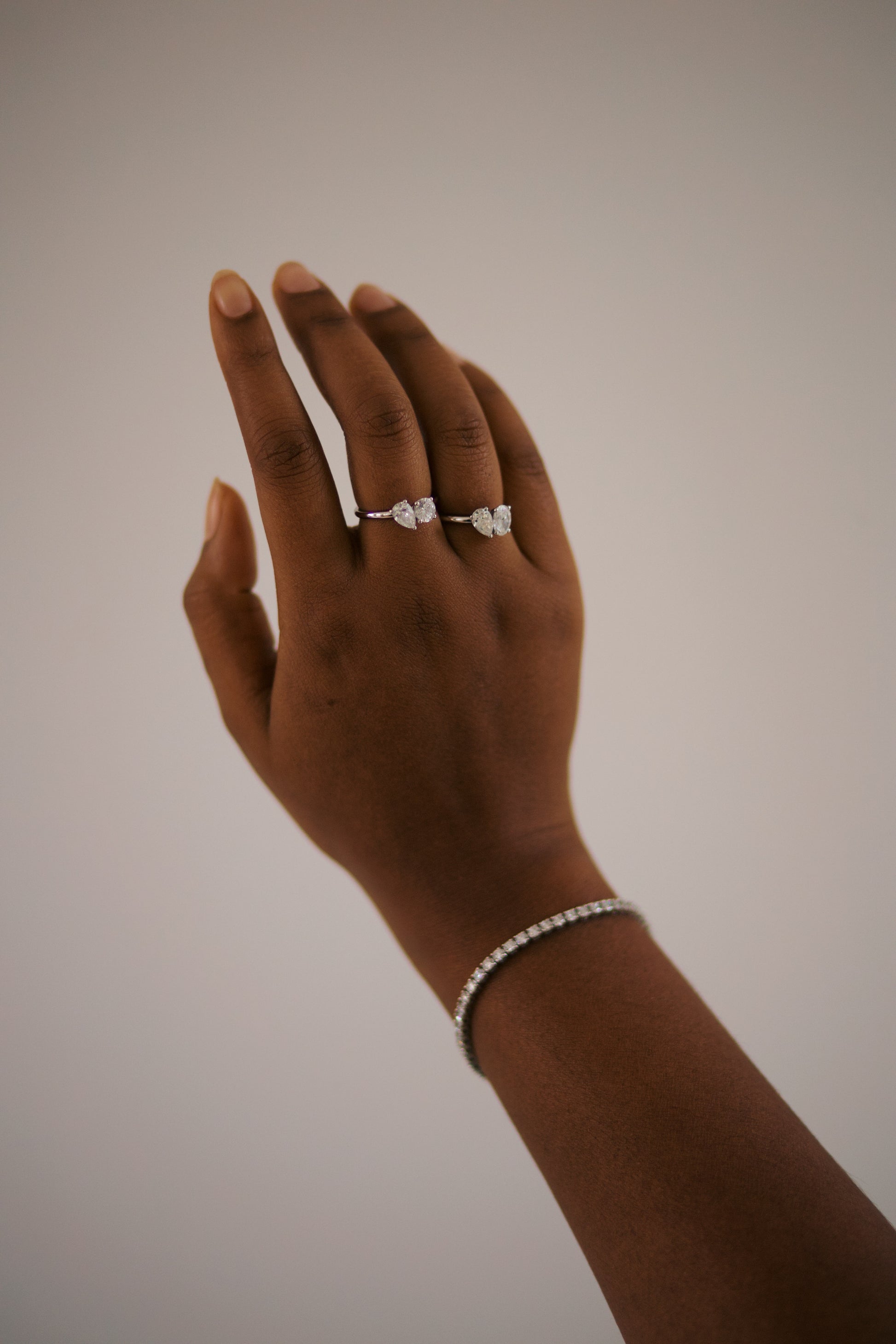 Juline is een eigentijdse interpretatie van het klassieke toi et moi-ontwerp, twee diamanten, verschillend in vorm.