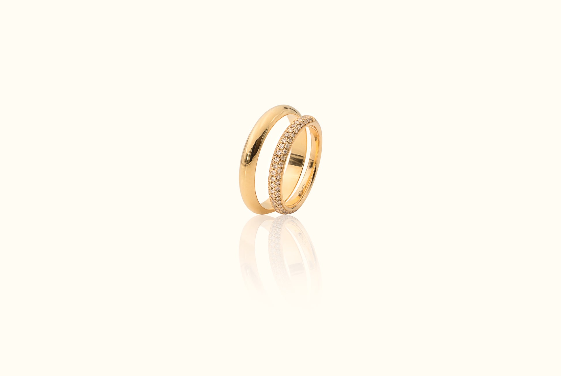 Details ring: 18 karaat geelgoud met 27 lab grown diamanten van 1,1 mm en 52 diamanten van 0,9 mm in ringmaat 53