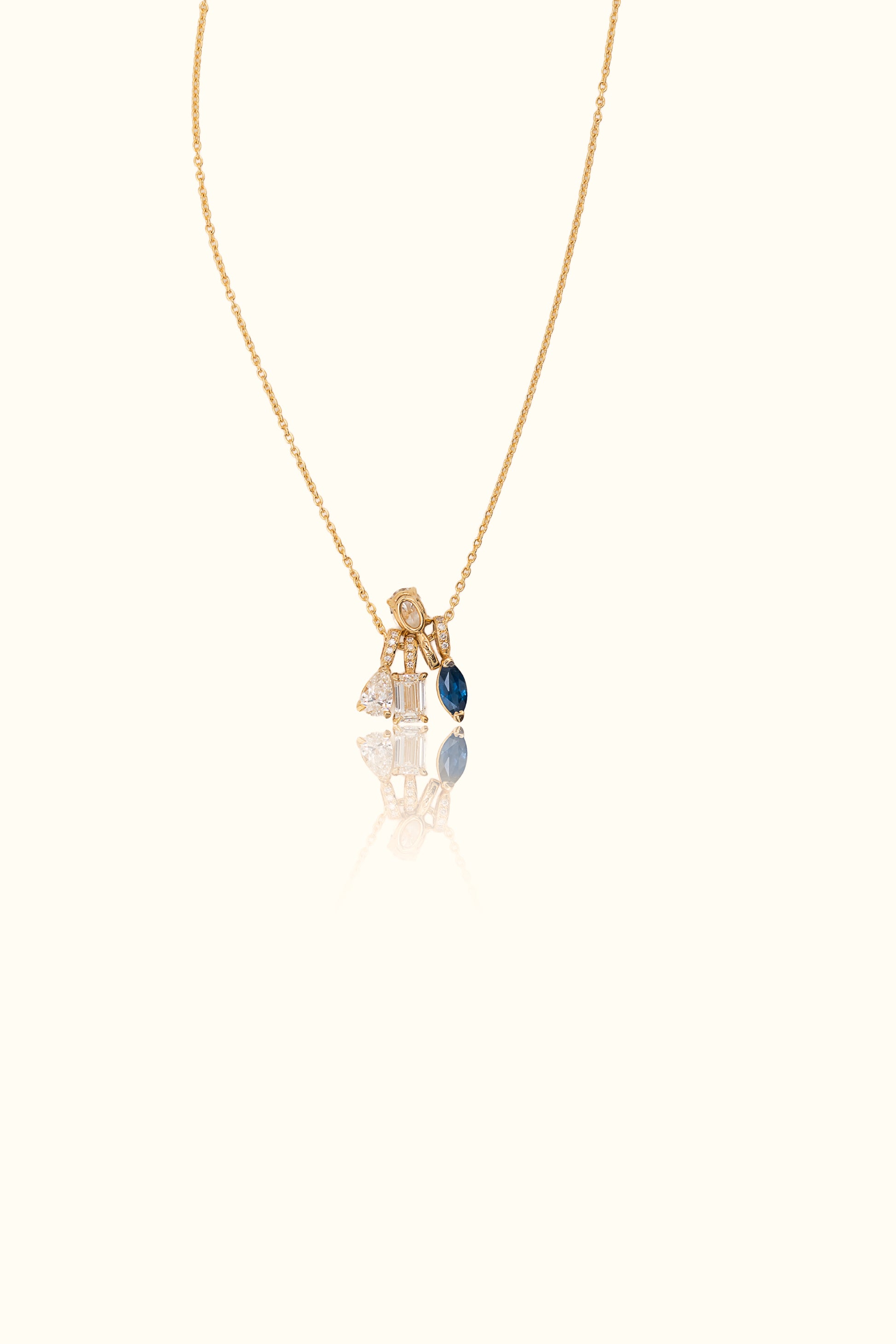 Elke steen van 0,5 karaat hangt aan een ringetje bezet met vier diamanten, subtiel maar vol licht. Een ketting die blijft, en meegroeit met alles wat belangrijk is.
